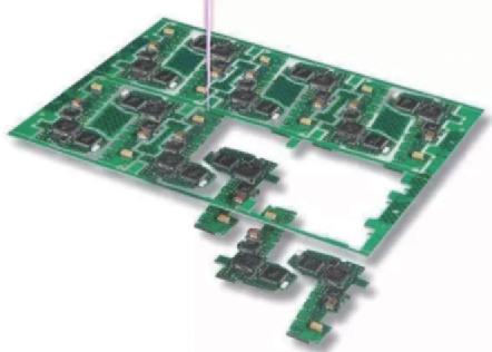 切割斷點分板,激光系統(tǒng)會通過一個前面所述的加工過程切斷連接點。這個切割過程可緊挨靠近邊緣的元器件進行,對于較厚的電路板來說也是非常經(jīng)濟的。