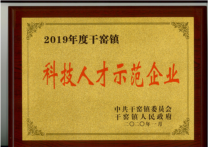 熱烈祝賀公司榮獲2019年度干窯鎮“科技人才示范企業”