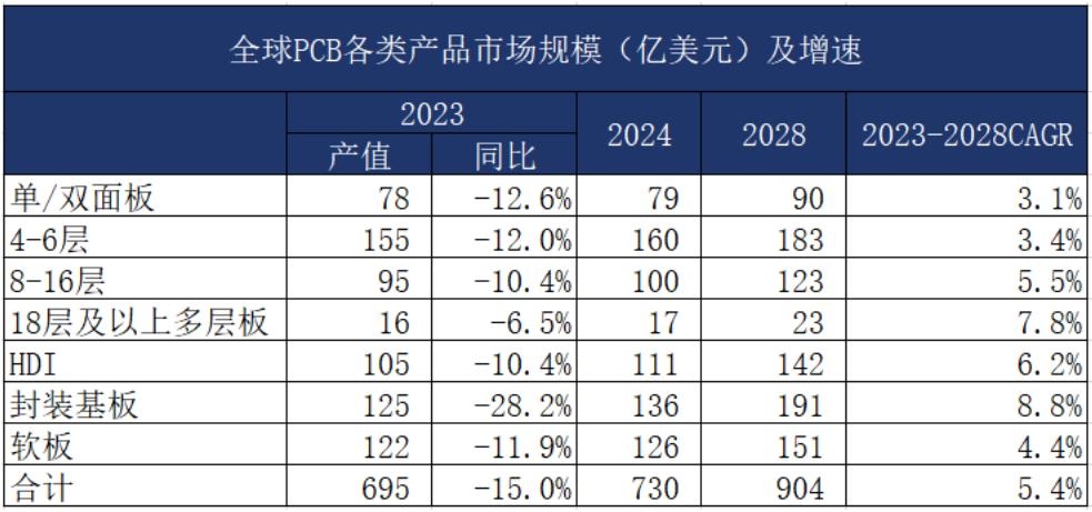 3、多層板是需求主量,封裝基板、HDI 成長率將領銜上升