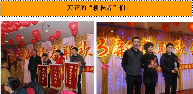 接著,王總為大家宣讀了公司發(2013)01號《關于“一區一號四崗”表彰決定》、公司發(2013)02號《關于二O一二年度“踐諾之星”表彰決定》。表彰環節正式開始。公司領導一一為2012年度“一區一號四崗”獲獎人員、“踐諾之星”頒發了獎杯、榮譽證書和獎金。他們就是萬正人心中的楷模,追逐著夢想的萬正人!也許平日的他們默默無聞,但是今天的他們卻閃閃發光,因為他們告訴了大家什么事盡職盡守,什么是創新突破,什么是同舟共濟,什么是誠實守信,什么是堅守責任,什么是迎難而上。現場熱烈的掌聲此起彼伏,這充分表達了大家對夢想踐行者們的敬佩之情。
