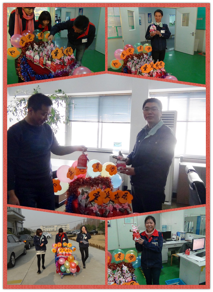 2013年12月24日下午13:00,一輛滿載著圣誕禮物的小推車出現在公司辦公區、生產車間中。