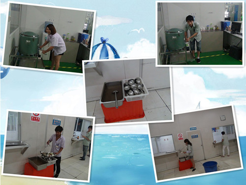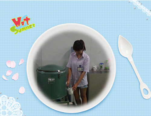 夏季“送清涼 送健康” 活動由行政部組織開展。由行政部警衛人員、食堂阿姨分工協作,為員工送上口味豐富的冰鎮果珍,有檸檬味、甜橙味、葡萄味、水蜜桃味……每天早上警衛人員負責燒水、冰水工作,食堂阿姨負責果珍調配工作,以保證在下午一點鐘高溫時間段為生產一線員工送上清涼可口的冰爽果珍。而上夜班員工晚上則可以在夜宵時間品嘗到食堂阿姨精心熬制的清涼爽口的冰鎮綠豆湯。他們的默默付出我們有目共睹,奮斗在生產一線的員工也切身感受到公司的濃濃關愛。
