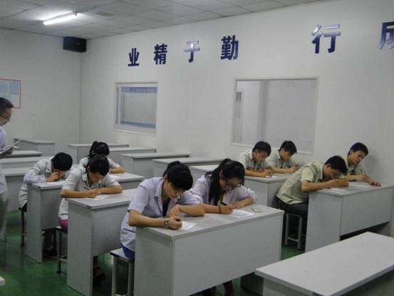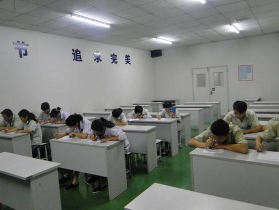 二O一四年七月十八日晚五點,公司生產區培訓室里員工們低頭奮筆疾書,這里正在進行一場“二O一四年上半年度組長、高級工質量知識考核”。參加人員共為37名,分別為高級工18名,組長19名。
