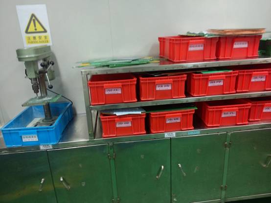 鴻運通:有專門的MRB區域,一臺檢驗桌,一張工作臺,一個不繡鋼架子,架子上有指定每個課室的報廢箱,包括每個外加工商、板材供應商等都有單獨的區域或者箱子,課室負責人或者外加工商隨時可以確認報廢。