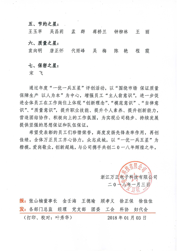 關(guān)于二O一七年度“一優(yōu)一兵五星”表彰決定