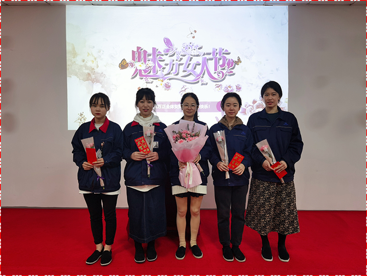 鮮花和紅包由工作人員逐一親手遞到女職工的手上,這份來自手心里的溫暖,增強了女職工們的歸屬感、幸福感和獲得感,讓她們充分感受到來自萬正大家庭的關懷與關愛。她們紛紛上臺合影,為這美好的時刻留下了一張張值得回憶的照片。