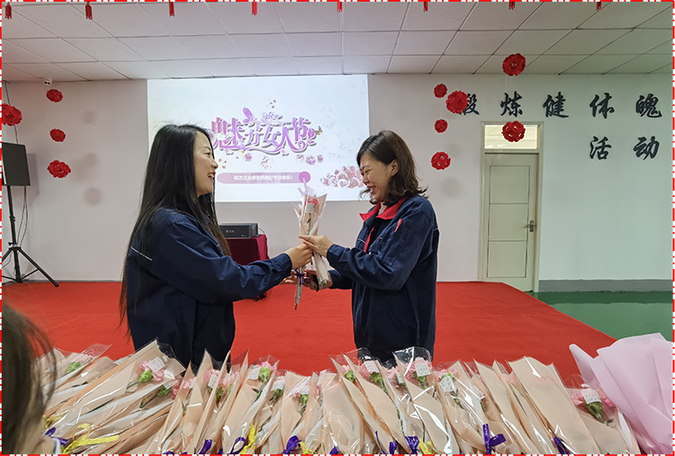 早上八時,在公司活動室里,每位女職工都收到一支具有節日意義的花朵和一份100元現金紅包。公司向她們致以節日的祝福和親切的問候,她們出色地完成了家庭與社會賦予的多重角色,在疫情防控和公司各個崗位上發揮了重要作用,展示了她們愛崗敬業、巾幗不讓須眉的精神和風采。