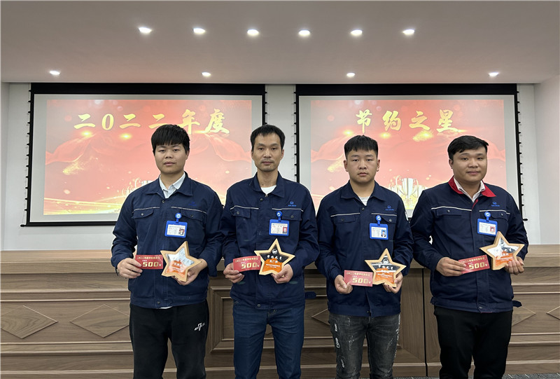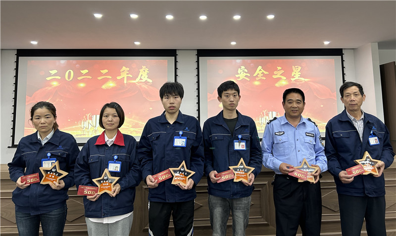 接著舉行二O二二年年度評優表彰會,表彰會上共表彰了十佳員工10名、表揚員工10名、優秀黨員2名、優秀管理干部5名、優秀班組4組、創新之星4名、內審之星1名、優秀師傅6名、保密之星1名、節約之星5名、技能之星6名、質量之星7名、安全之星6名,分別頒發獎杯、錦旗和獎金。