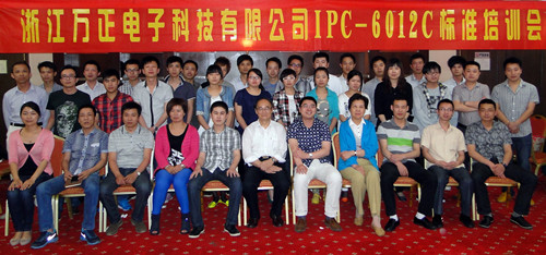 2013年05月26日,浙江萬正電子科技有限公司科協組織公司組長以上人員在嘉善華展大酒店四樓會議室進行“IPC-6012C”標準培訓。