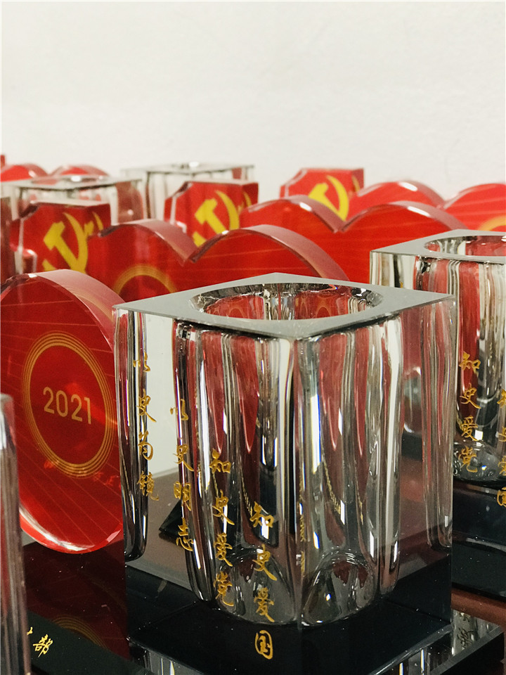 “心中有信仰腳下有力量”,為慶祝中國共產(chǎn)黨建黨100周年華誕,公司為每位黨員同志們定制了一份精美紅色紀念品--水晶筆筒擺件,它是結(jié)合中國共產(chǎn)黨成立100周年慶祝活動標識,第一個百年之路紅色數(shù)字“100”、金色數(shù)字“1921”、“2021”和56根金色光芒線組成,同時筆筒上刻有:“以史為鏡以史明志知史愛黨知史愛國”16個金字,整個紀念品擺件高端大氣、光彩奪目。2021年6月29日下午,這份特殊紀念擺件發(fā)放給每位黨員同志手中。“不忘初心牢記使命”,每一位黨員同志將堅定理想信念、忠誠履職盡責、立足崗位,以飽滿的熱情、昂揚的斗志投入到公司生產(chǎn)經(jīng)營當中。